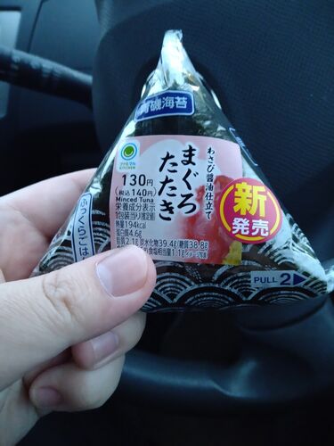 新発売のおにぎり食べました! まぐろたたき!食べてみると、ほんのり、わさびを感じたあとマグロ旨味が!結構中身も入っているので満足感強いですね。少し高いですがなかなかの完成度です!